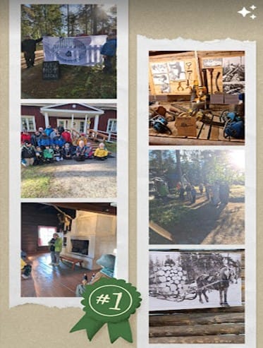 Elokuun lopussa 2025 päästiin sitten viimein itse asiaan. Mukaan tuli myös osallistujia Napapiirin tytöt ja Napapiirin pojat lippukunnista, joista saimme myös tukea tapahtuman pystyttämiseen ja pyörittämiseen. Alku alkoi lipunnostolla ja sääntöjen ja turvalisuusasioiden kertaamisella sekä toistemme esittäytymisellä. Loistavan oppaamme johdolla saimme kuulla metsätyömiesten historian vaiheista sekä tukkikämppäkulttuurista kohti koneellistumisen aikakautta. Sudari-ikäiset esittivät innokkaasti kysymyksiä “Samperin savotasta”, sillä nimen takaa paljastuu metsäpäällikkö herra Sandberg 1900-luvun alusta. Sudarien partiomerkkeihin kuuluu mm. kotiseutumerkki, joka sisältää usein paikallisessa kohteessa vierailun. Mielikuvitus kuului asiaan ja rakennuksista etsittiin myös haamuja.
